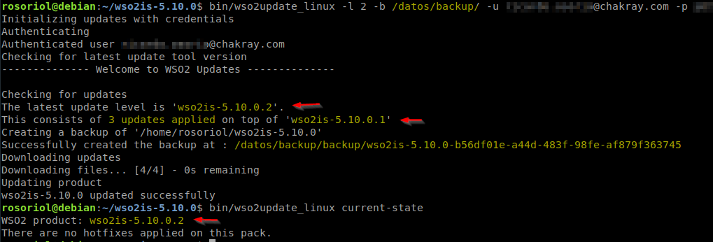 {WSO2_HOME}/bin/wso2update_linux -b /datos/backup/ -u user@user.com
