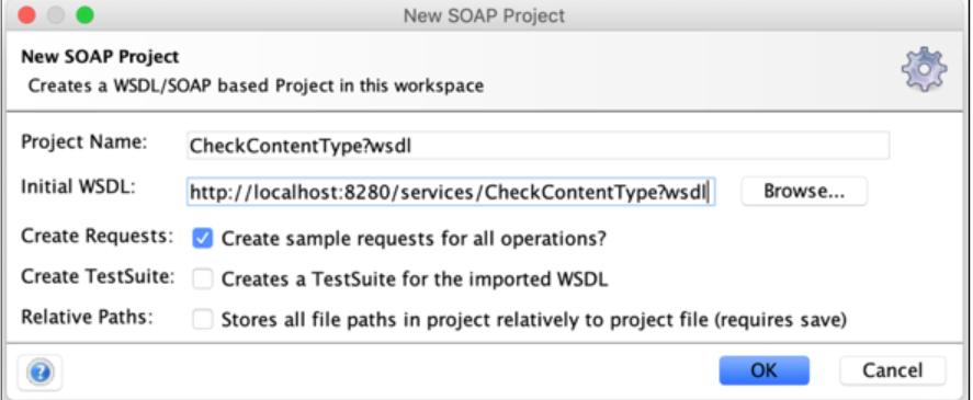 We can use the WSDL file published by the proxy to generate client requests. To do so, import that wsdl file into SOAPUI, for example, using the url that contains the proxy adding “?wsdl” at the end of the url, as shown on the top of the following image. The proxy publishes for us the methods used by the service. It is visible through a browser: